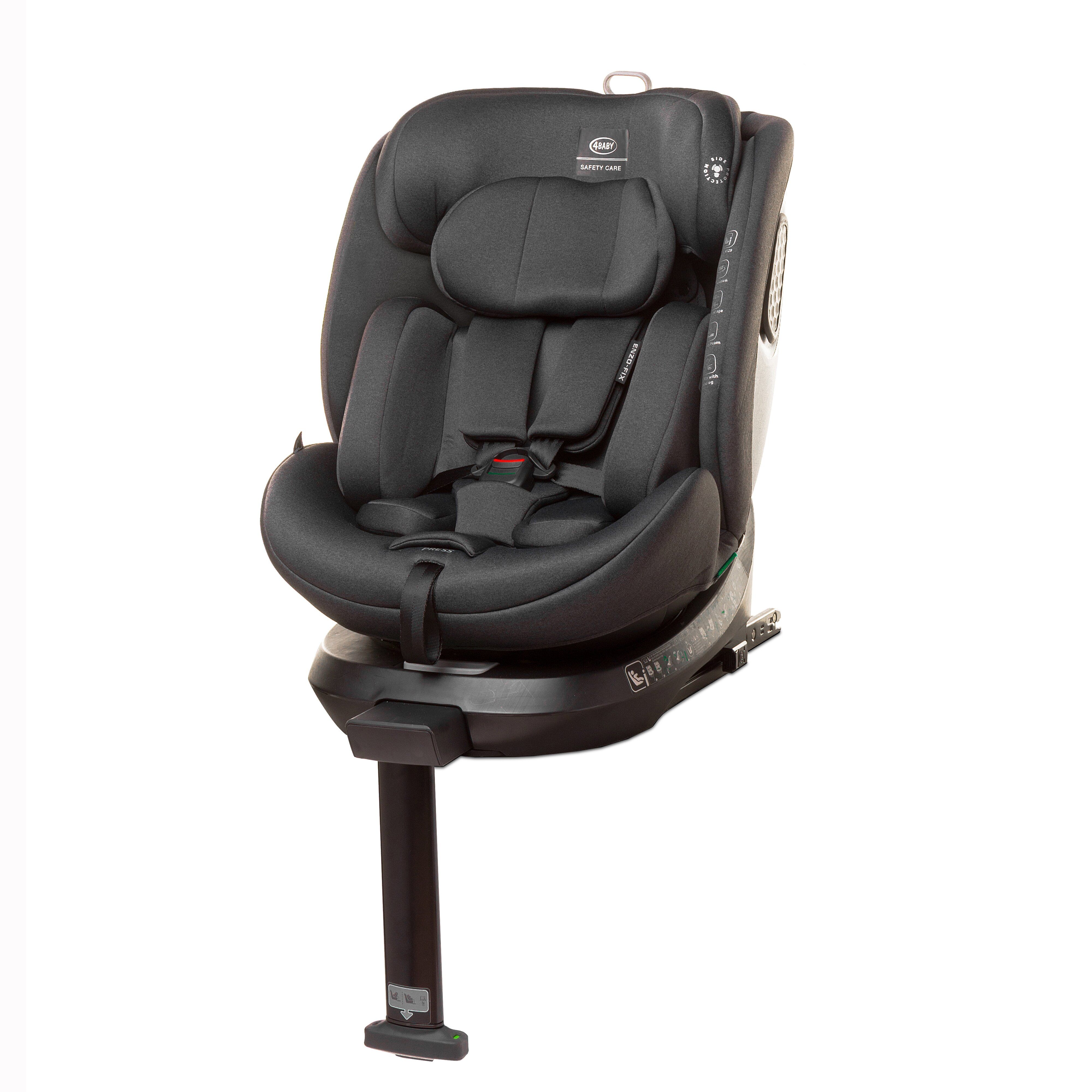 Enzo-Fix priklauso naujos kartos automobilių kėdutėms, atitinkančioms griežčiausią I-Size saugos standartą. Tai užtikrina aukščiausią apsaugą vaikams nuo 40 iki 150 cm ūgio. Enzo-Fix integruota su besisukančia baze, turinčia „Isofix“ sistemą ir stabilizuojančia koją su tinkamo montavimo indikatoriais. 360 laipsnių pasukimo funkcija leidžia lengvai pakeisti važiavimo kryptį, patogiai pritvirtinti vaiką prie kėdutės ir išimti jį iš automobilio.