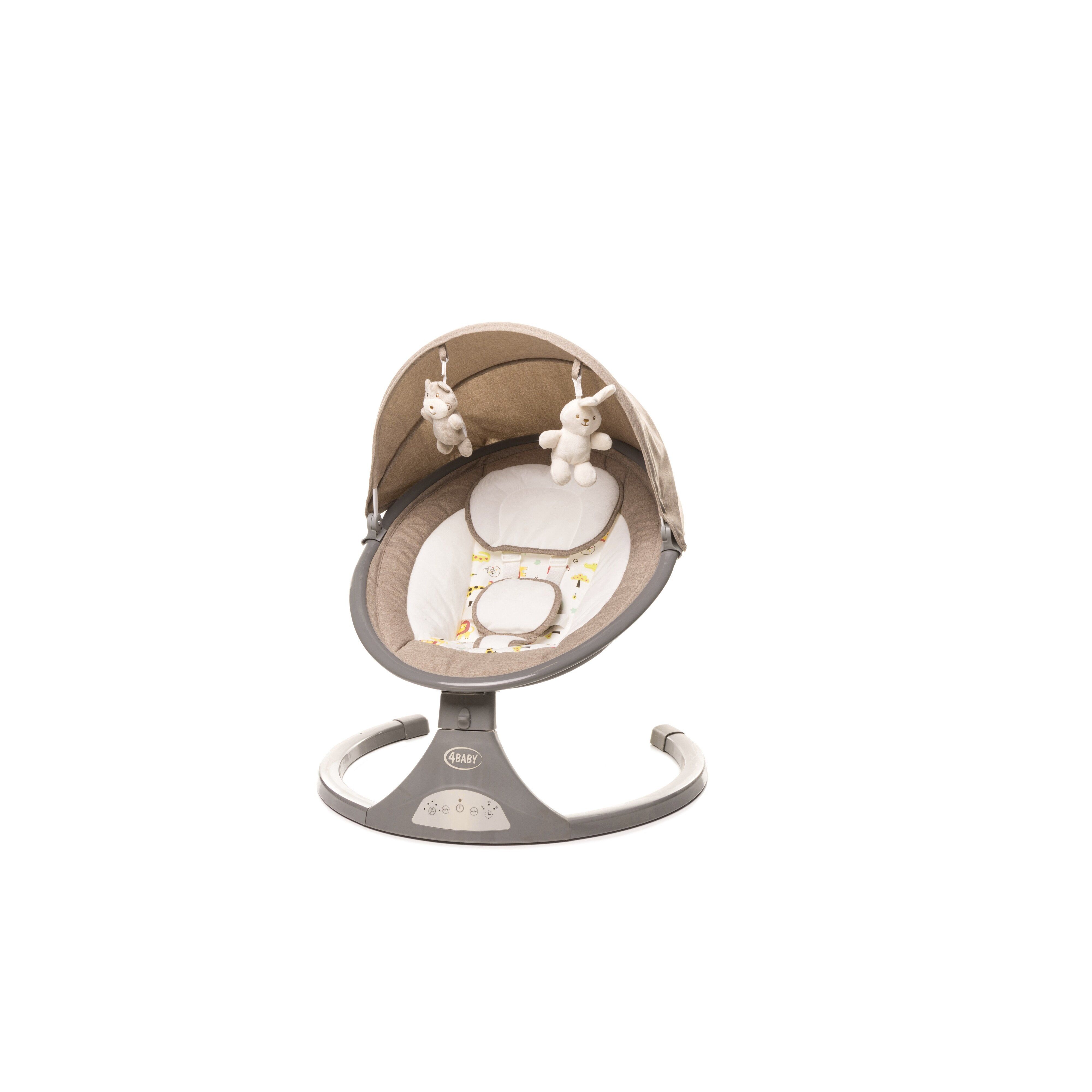 Sūpynės turi 5 siūbavimo greičius su ramiu siūbavimo judesiu, 12 integruotų melodijų su reguliuojamu garsumu, taip pat USB jungtį, suteikiančią galimybę groti mėgstamiausias vaiko lopšines.