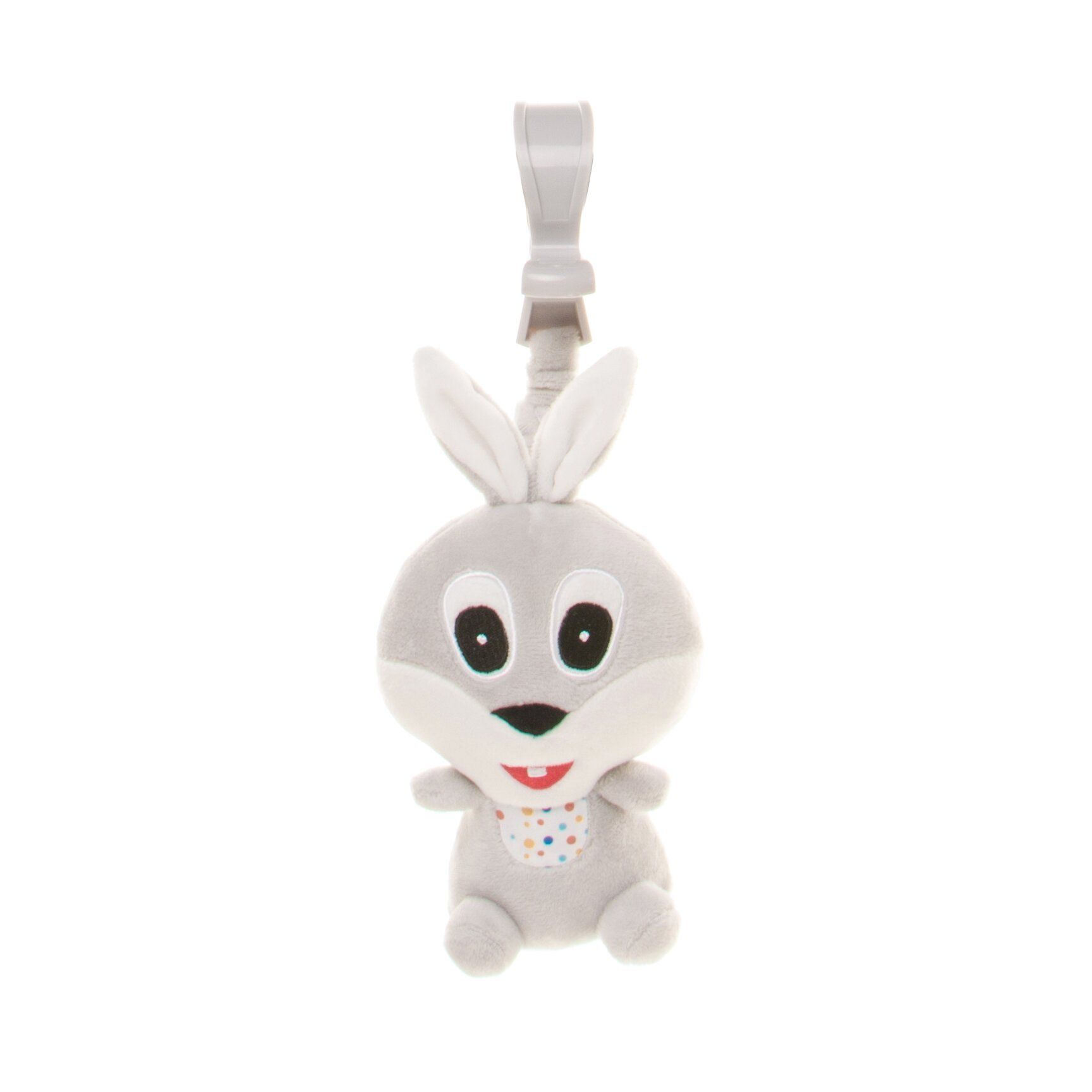 Turi cypsinčių ir šiugždančių elementų, kurie skatina vaiką žaisti. Turi universalų kabliuką.