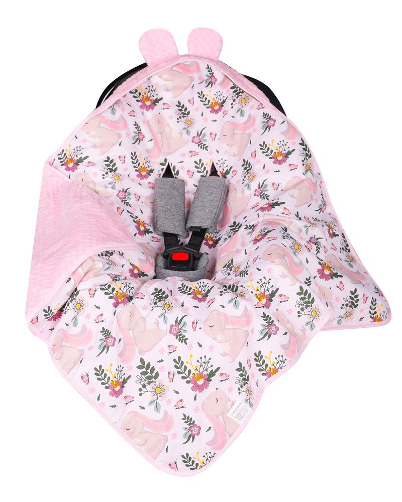 Apraksts Autosēdeklīša guļammaiss "Bunny and flowers" 80x80 cm rozā minky ar baltu kokvilnu (ar spalvām)