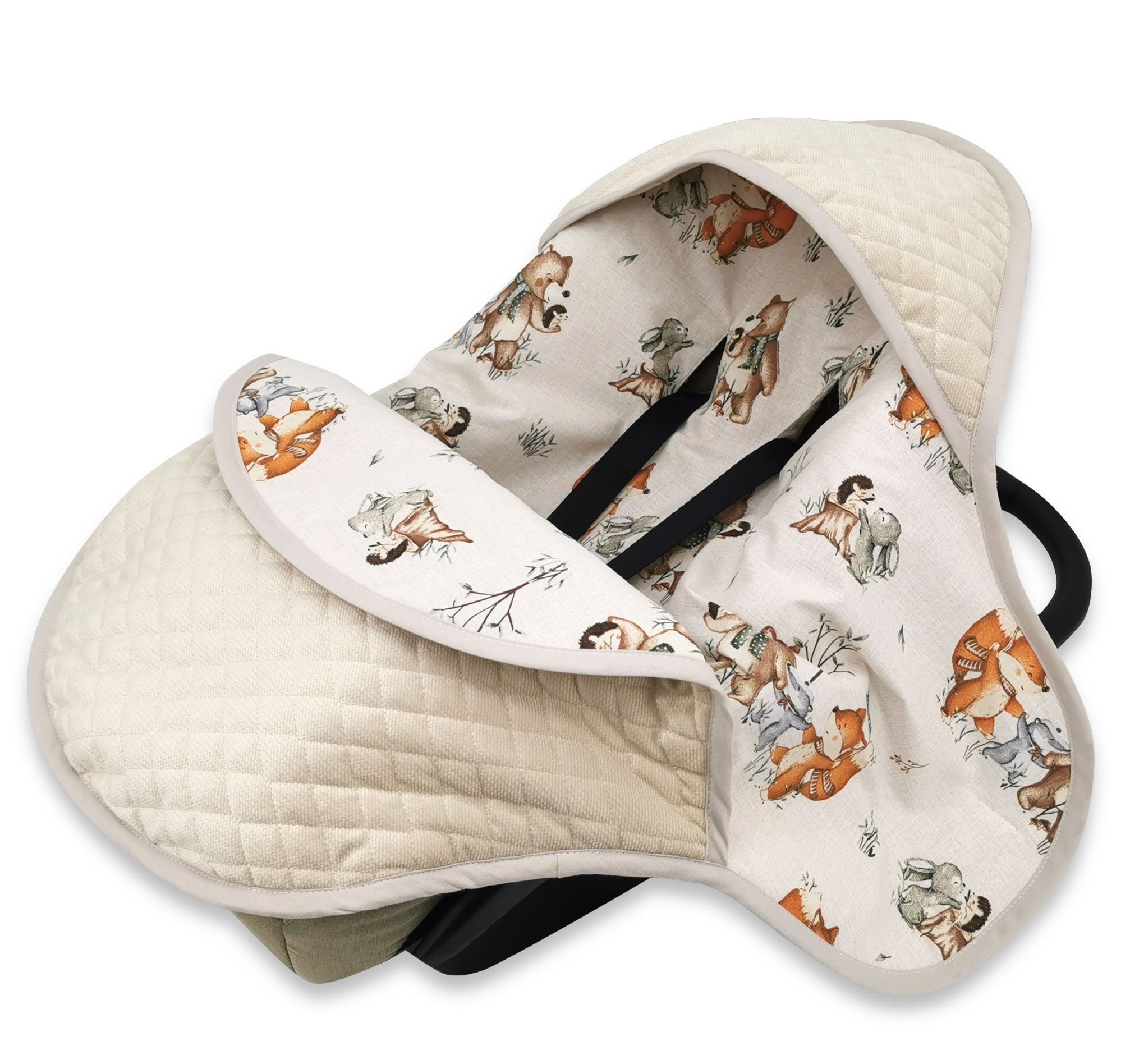 Одеяло для автокресла совместимо с большинством автомобильных сидений, подходит для сидений 0-13 кг с 3-точечными ремнями безопасности.
