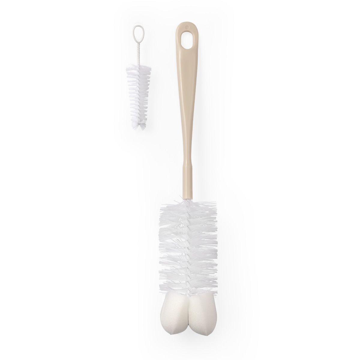 Ilgas šepetys su minkštu kempinėlės antgaliu lengvai pasiekia buteliuko dugną, o mažasis šepetėlis tiksliai pašalina maisto likučius nuo žinduko. Ergonomiški antgaliai leidžia pasiekti net sunkiai prieinamas vietas.