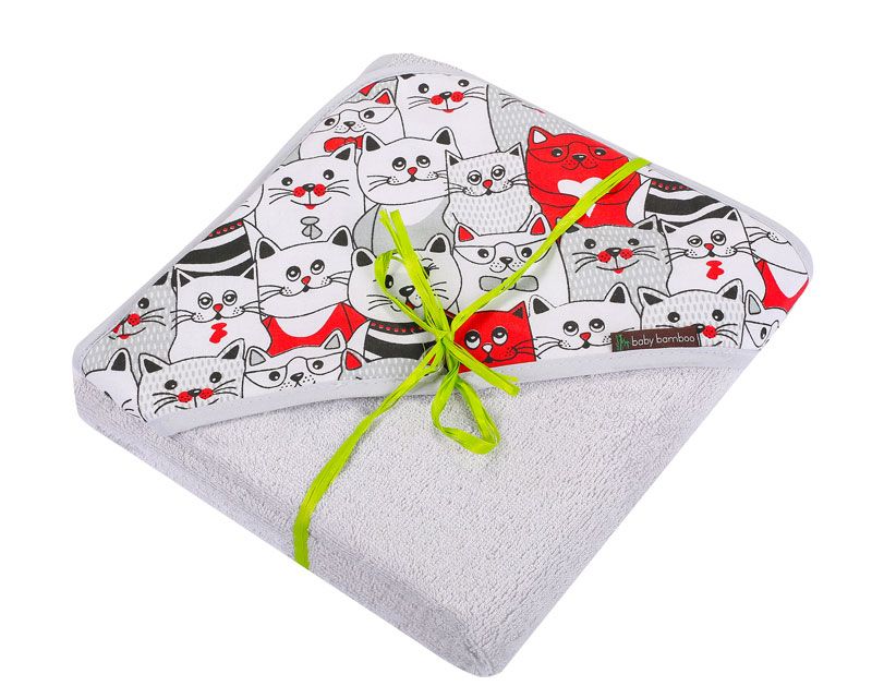 Bambusa dvielis ar kapuci 100x100 cm "Baby bamboo" pelēks ar kaķēnu
