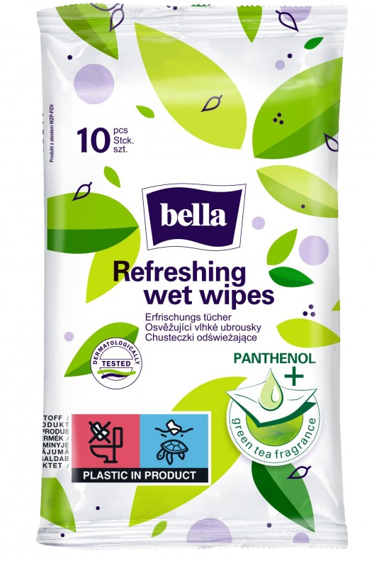 Bella mitrās salvetes ar zaļās tējas smaržu maigi un efektīvi attīra un atsvaidzina sejas un ķermeņa ādu. Tie ir paredzēti universālai lietošanai visai ģimenei. Pateicoties zaļās tējas ekstrakta un pantenola izmantošanai, tie nomierina un atsvaidzina, atstājot patīkamu smaržu.