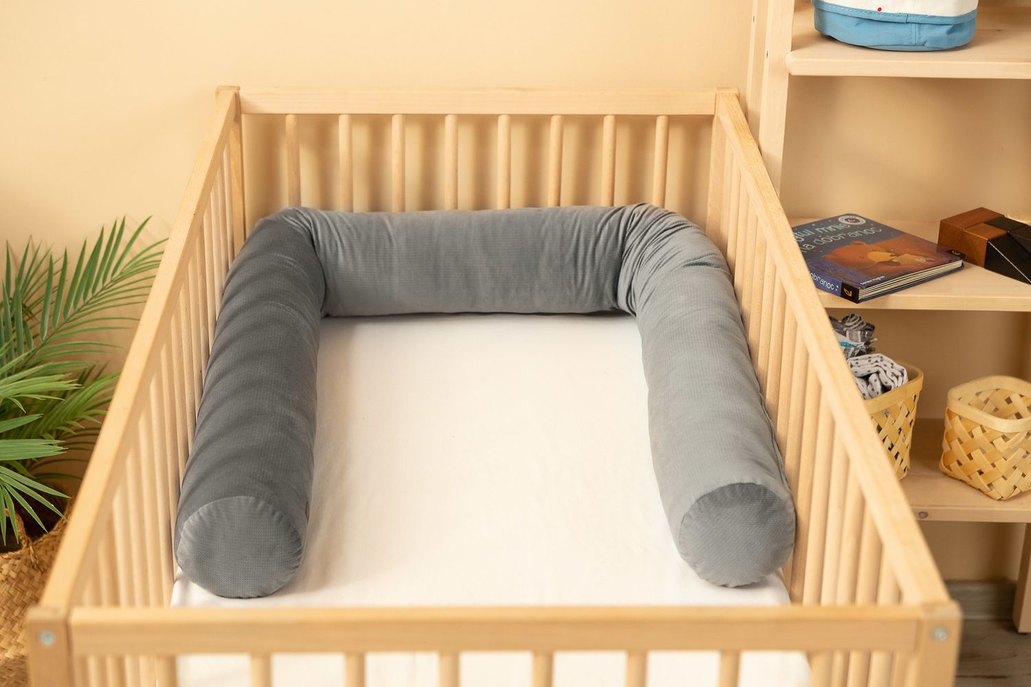 Rullīšu formas gultiņas aizsargs palīdz nodrošināt bērnu drošību un ērtu miegu. Tas novērš atsitienu pret gultas malām un izolē no sienas aukstuma. Novietojot to zem durvīm vai loga, varat to izmantot kā aizsardzību pret caurvēju. Tā universālais izmērs padara to piemērotu lietošanai zīdaiņiem, bērniem un pieaugušajiem. Aizsardzība ir mīksta un elastīga, un materiāls un pildījums nezaudē savas īpašības, neskatoties uz atkārtotu mazgāšanu. Pildījums ir antialerģisks.