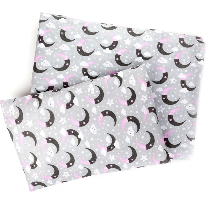 Bērnu gultas veļa šūpulim 80x70cm "Moon" ar rozā zvaigznēm