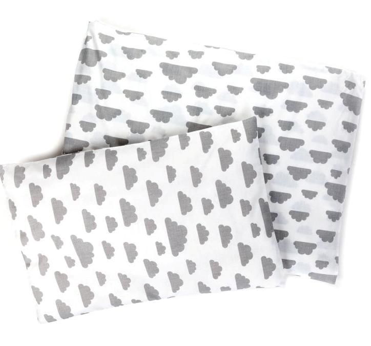 Bērnu gultas veļa šūpulim 80x70cm "Stars" balts ar pelēkiem mākoņiem