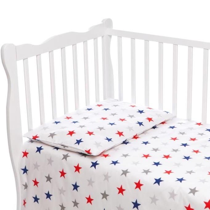 Apraksts Bērnu gultas veļa 135x100 "Galaxy" ar sarkanām zvaigznēm