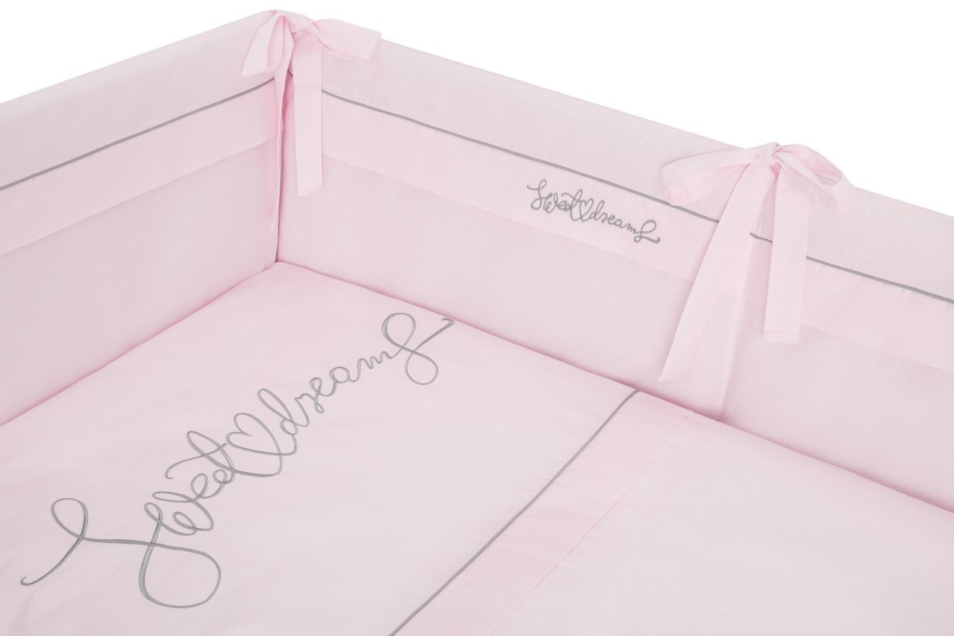 Apraksts Bērnu gultas veļa ar apmales "Sweet dreams" rozā