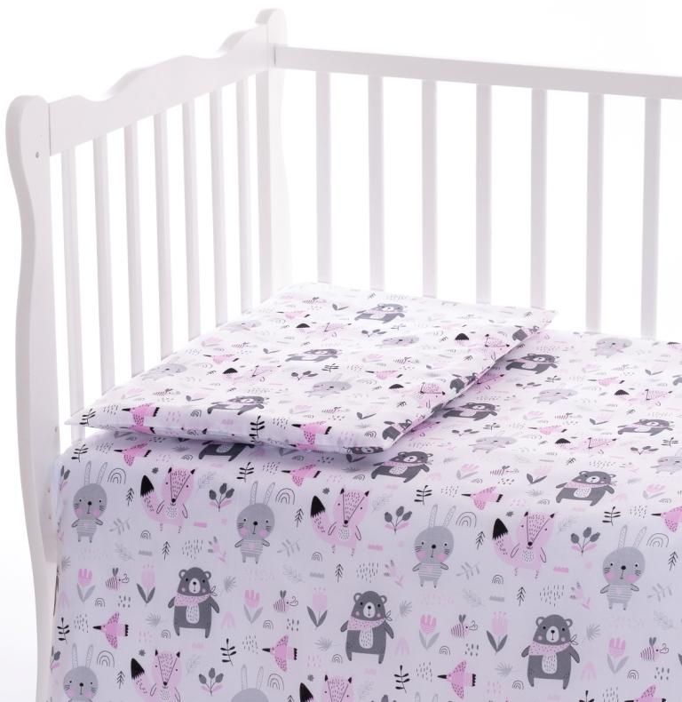 Apraksts Bērnu gultas veļa 135x100 "Forest" ar rozā elementiem