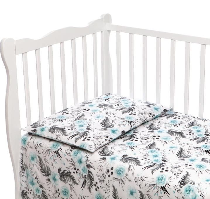 Apraksts Bērnu gultas veļa 135x100 "Flora" ar ziliem ziediem