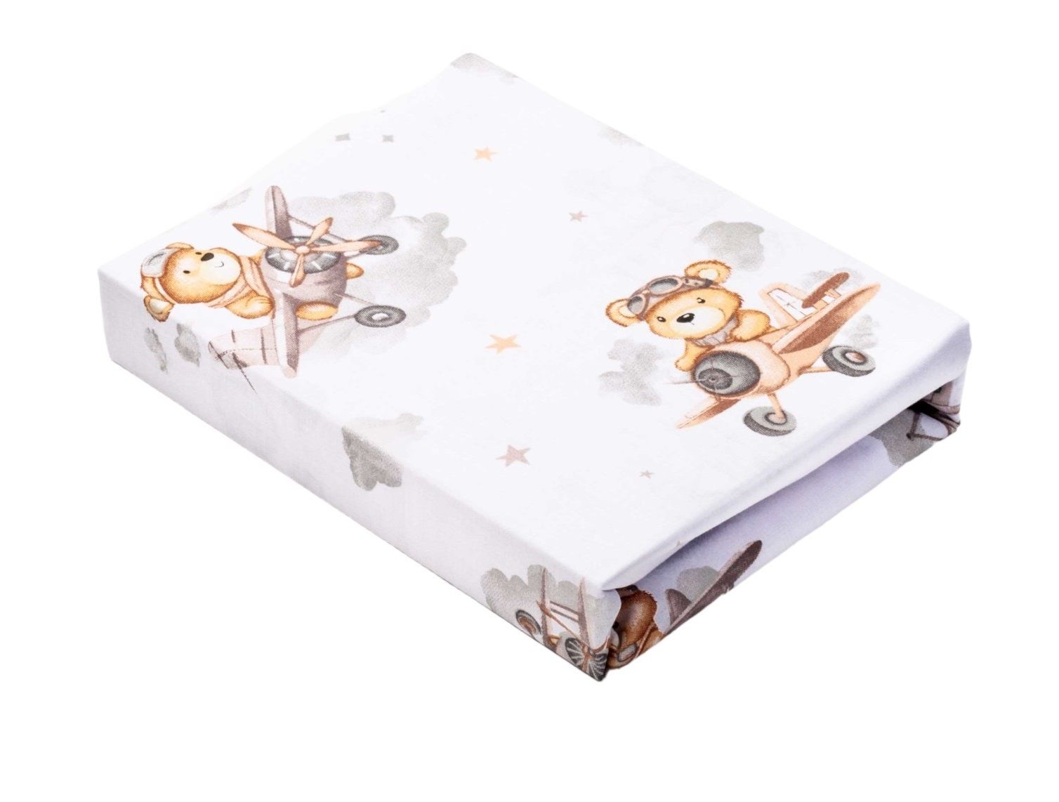 Bērnu palags ar gumiju 60x120 cm "Bear pilot beige"
