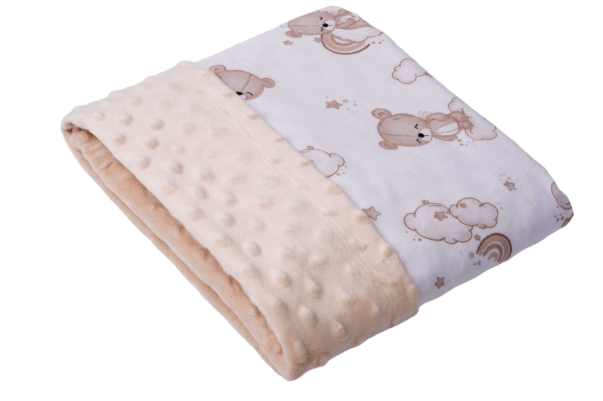 Mīksts, silts, pūciņas viegluma plediņš mazulim. Var izmantot kā sedziņu vai kā ērtu, kompaktu plediņu. Plediņš no vienas puses ir kokvilnas, no otras puses īpaši mīksts, pieskārienam patīkams plīša audums.