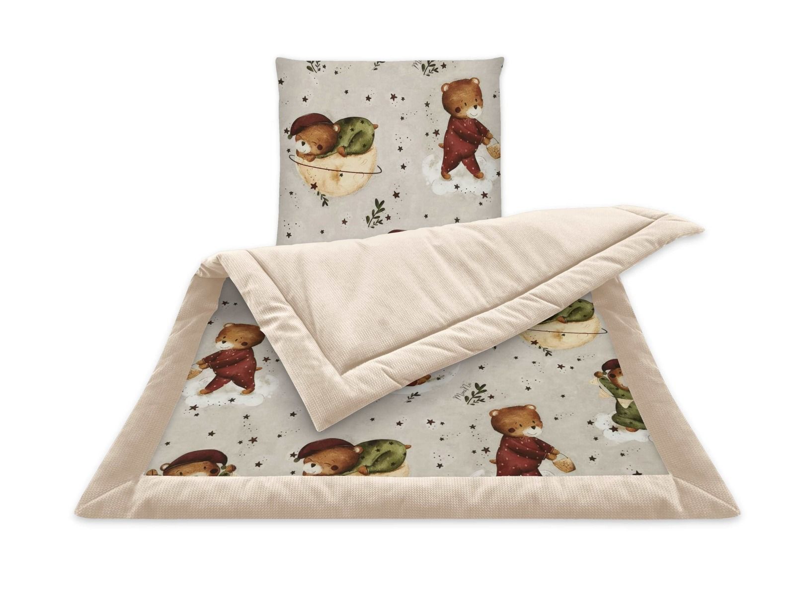 Smalks un elegants komplekts: sega ar dekoratīvu rāmi + spilvens bērnam.