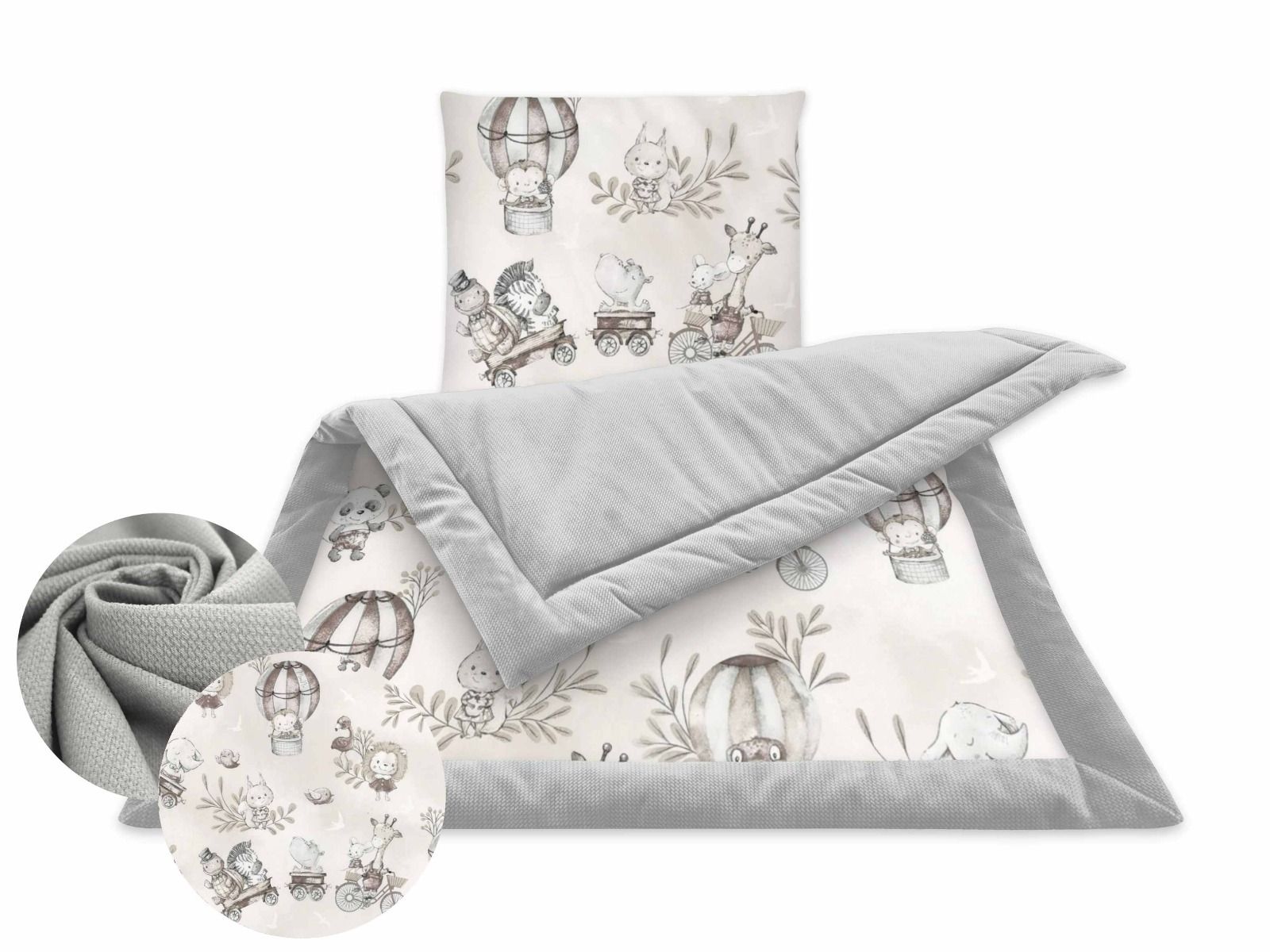 Šis komplekts ir piemērots lietošanai ratos, gultiņā vai mazākā gultiņā. Izgatavots no augstas kvalitātes mūsdienīgiem materiāliem ar smalkiem, moderniem rakstiem.