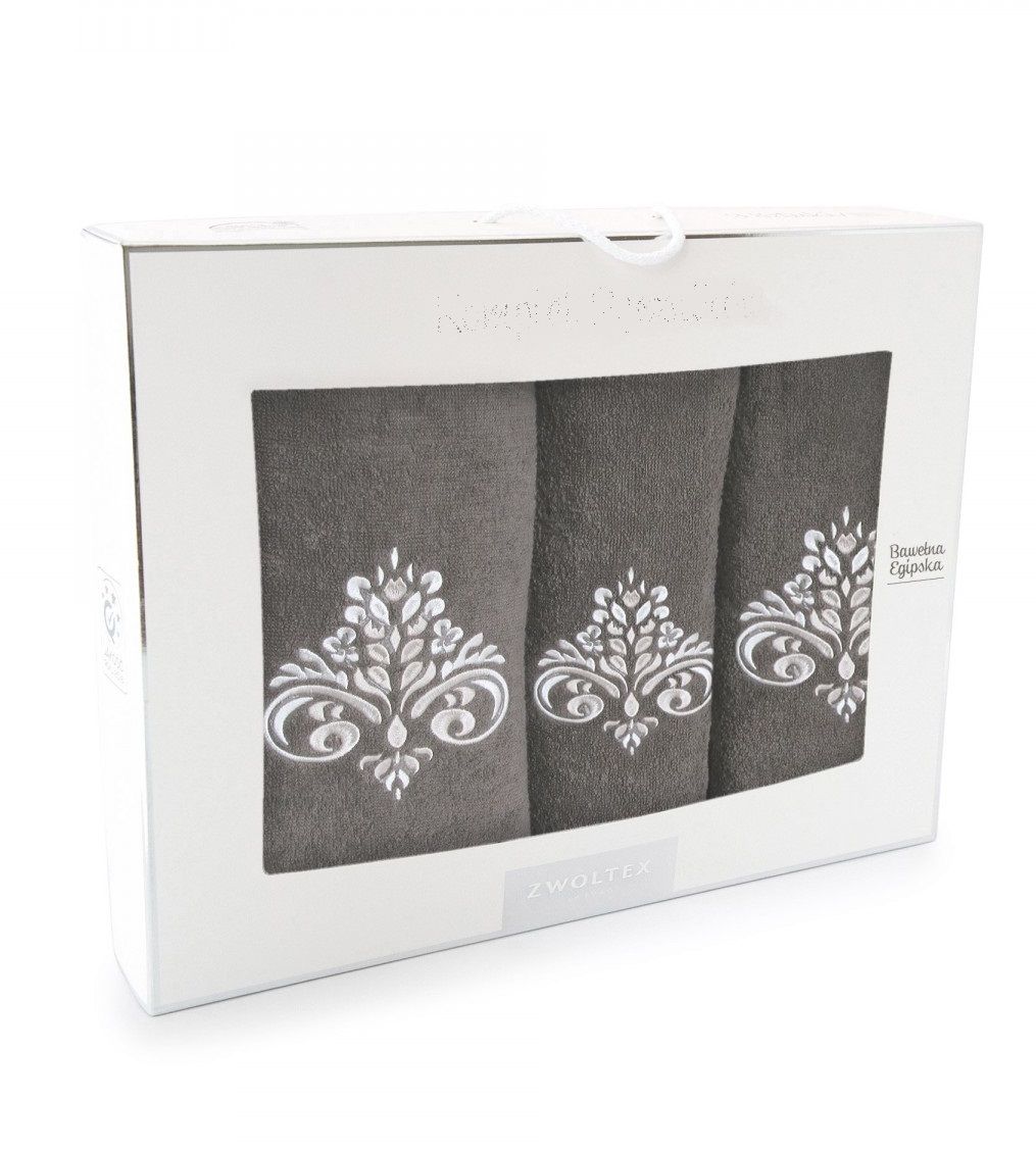 Apraksts Dvieļi (Ēģiptes kokvilnas) "Ornament" 3 gab brūns