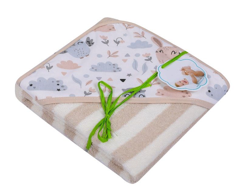 Mīksts un ērts dvielis zīdainim ar galvassegu. Dvielis un mazgāšanai izgatavota no 100% kokvilna.