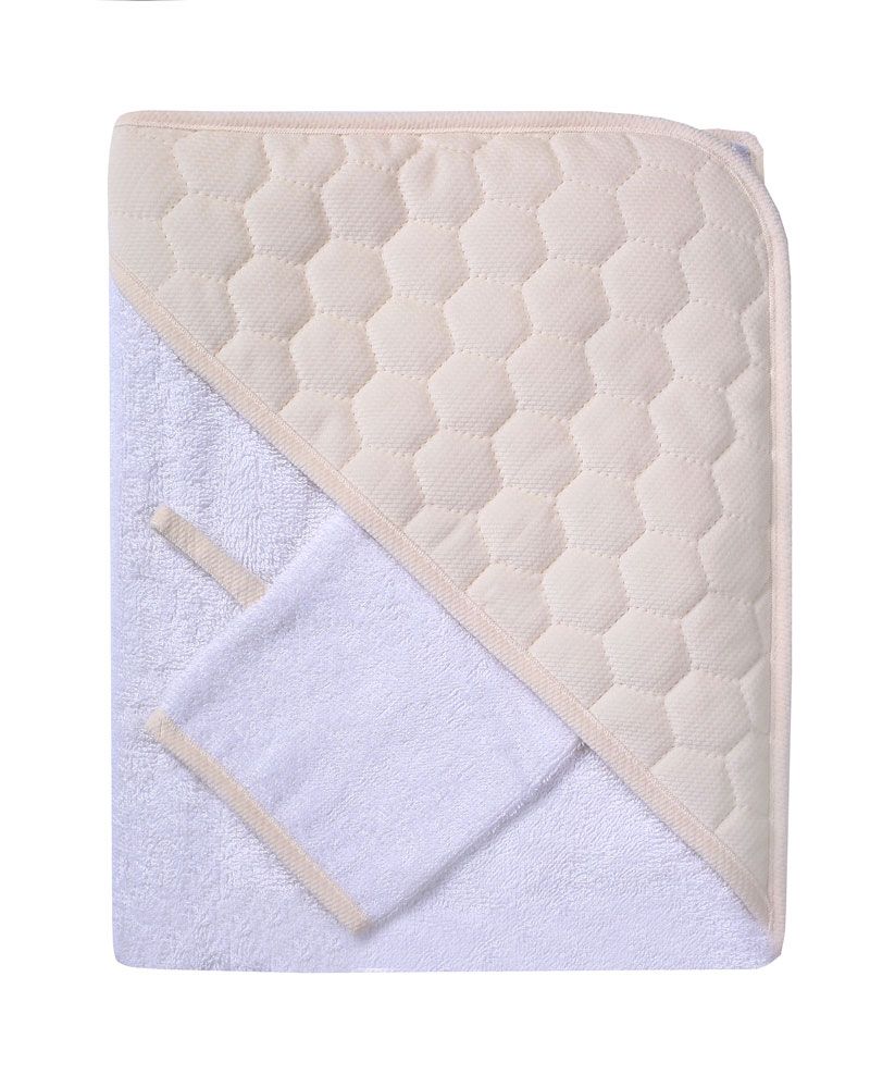Mīksts un ērts dvielis zīdainim ar galvassegu. Dvielis un mazgāšanai izgatavota no 100% kokvilna.