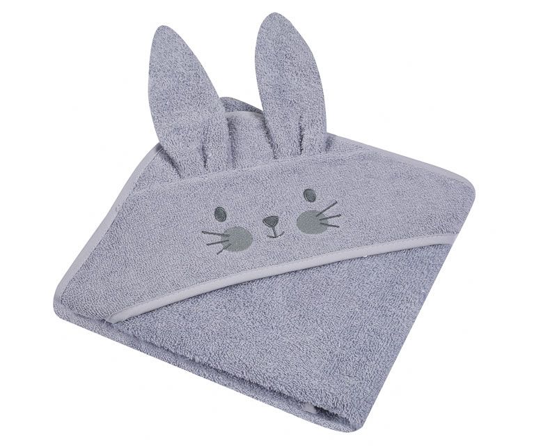 Bērnu dvielis ar kapuci "Bunny" 80x80 cm pelēks