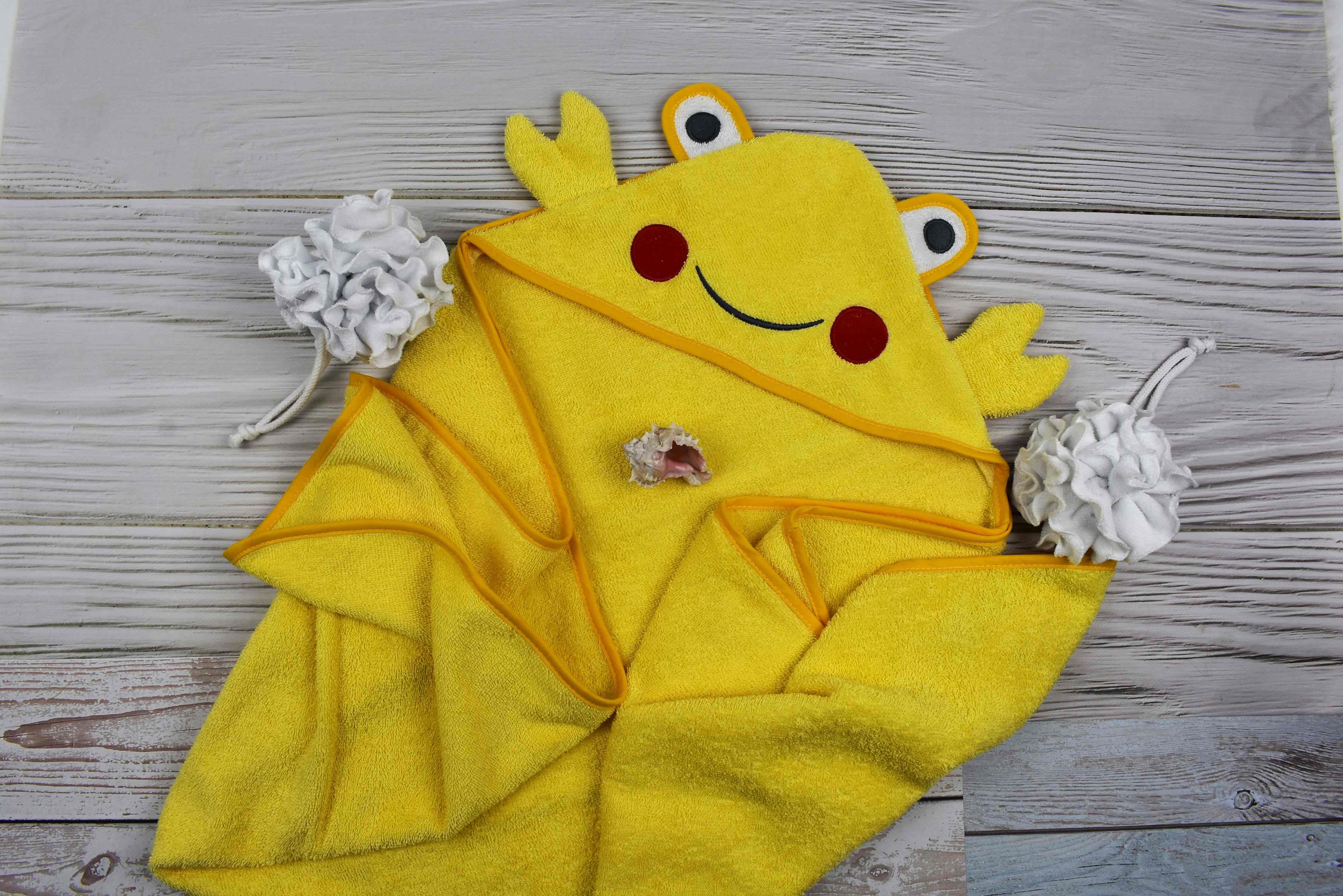 Apraksts Dvielis ar kapuci "Crab" 120x100cm dzeltens