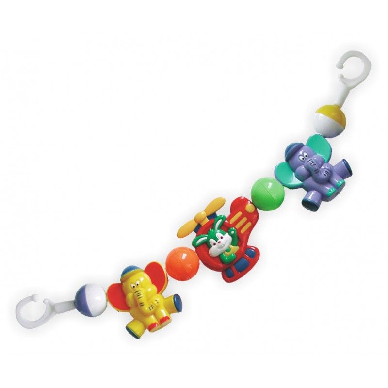 Piestiprinās pie ratiņiem, gultiņas vai krēsliņa. Piekārtās mantiņas pievērsīs mazuļa uzmanību un mazais tās varēs paņemt rokā.