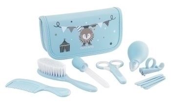 Komplektā: kosmētika, dabīgo saru ķemme, ķemme, pipete, šķēres, deguna aspirators, nagu knaibles, 4 nagu vīles.