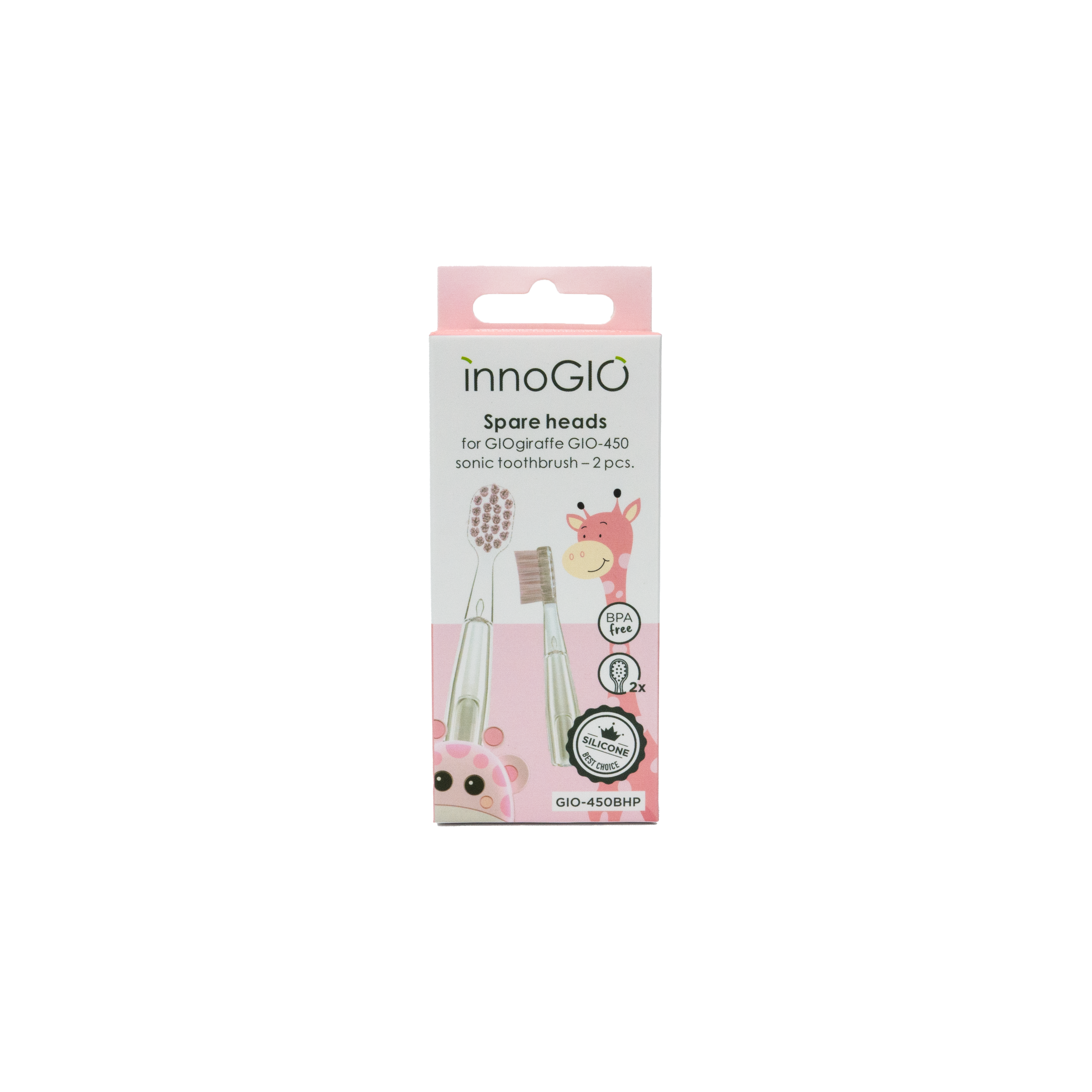 Dėžutėje yra dvi keičiamos dantų šepetėlio galvutės GIOgiraffe InnoGIO sonic, kurios pritaikytos vaikų dantų šepetėliui. Dantų šepetėlį galėsite naudoti ilgiau.