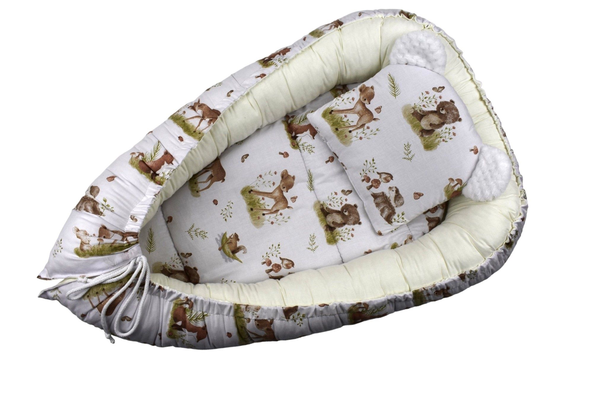 Kokons-ligzdiņa ir izveidota jaundzimušajiem, lai pirmie dzīves mēneši būtu īpaši droši. Lielisks palīgs māmiņai ikdienas mājas darbos, jo sniegs mazulim drošību un komfortu. Ligzdiņu var izmantot, kā mājās, tā ceļojumu laikā, jo tā ir viegla un kompakta, kā arī var izmantot kā pārtinamo virsmu.