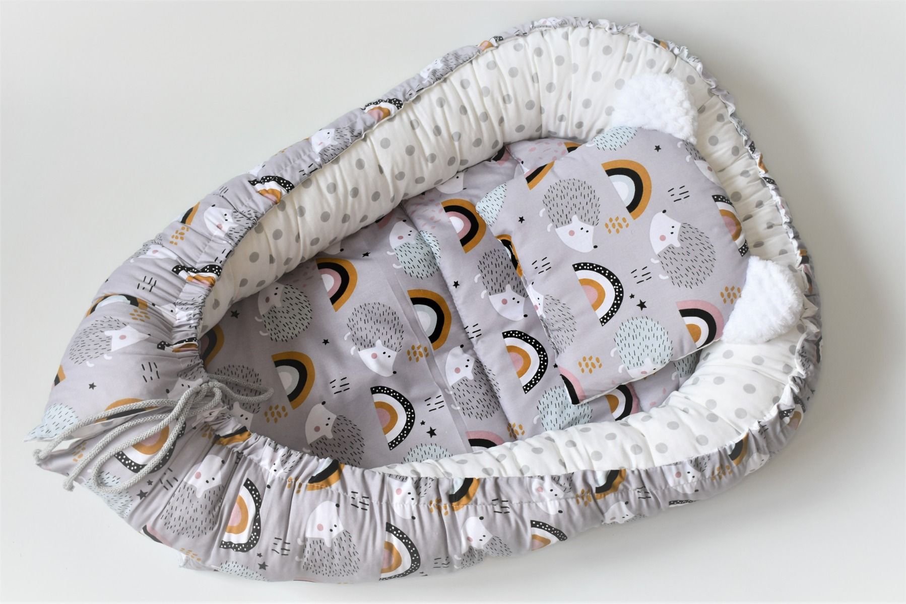 Kokons-ligzdiņa ir izveidota jaundzimušajiem, lai pirmie dzīves mēneši būtu īpaši droši. Lielisks palīgs māmiņai ikdienas mājas darbos, jo sniegs mazulim drošību un komfortu. Ligzdiņu var izmantot, kā mājās, tā ceļojumu laikā, jo tā ir viegla un kompakta, kā arī var izmantot kā pārtinamo virsmu.