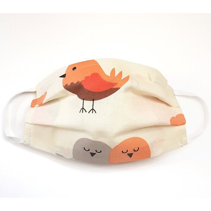 MamoTato vaikiška kaukė su kišene filtrui, gumytės, kreminė - paukščiukai