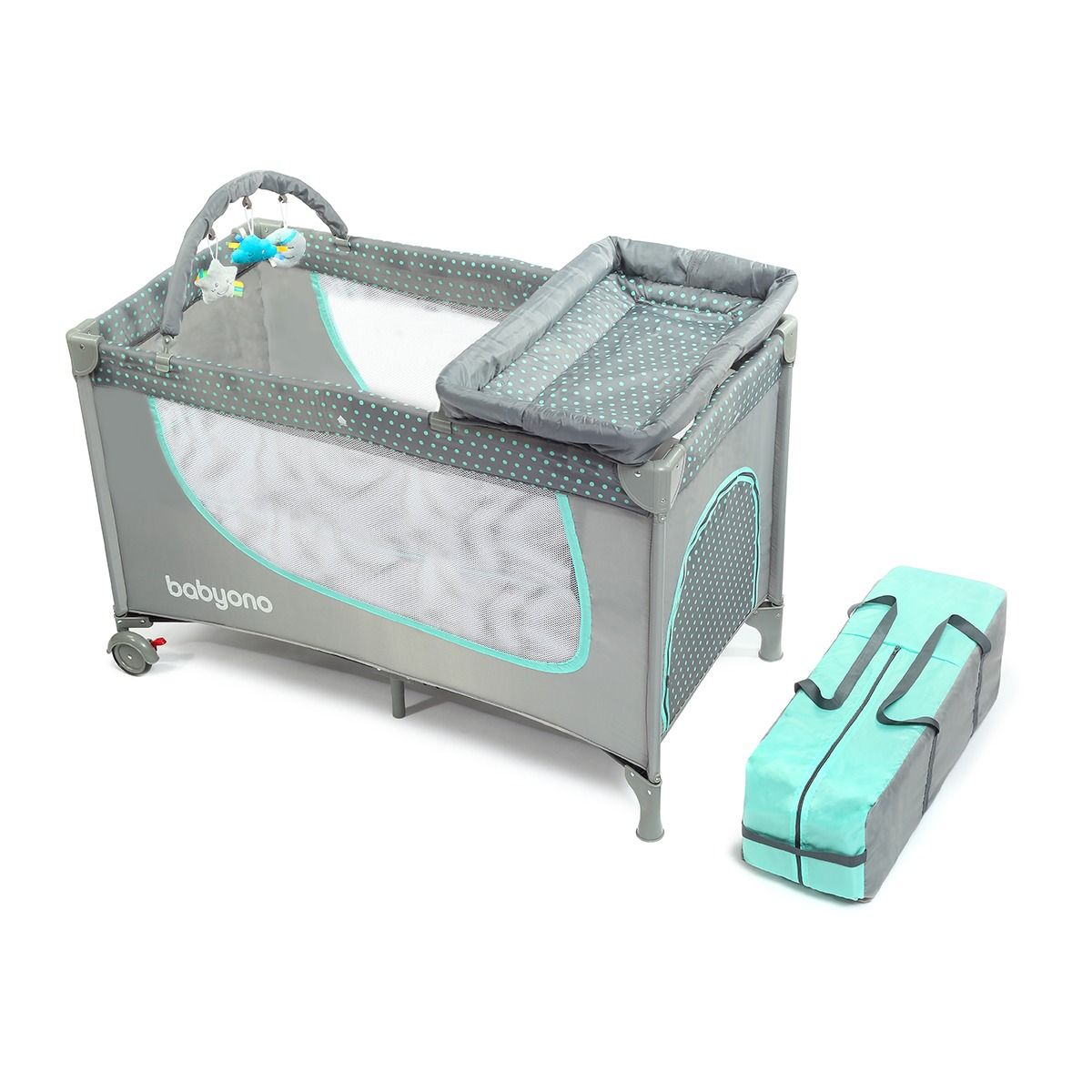 Maniežas su pilna įranga pagamintas iš kokybiškų medžiagų ir yra labai saugus. Spalvingi piešiniai džiugins vaiką jam žaidžiant arba keliaujant miegučio.