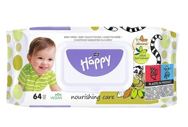 Влажные салфетки Bella Baby Happy с экстрактами листьев миндаля и оливы 64 шт.