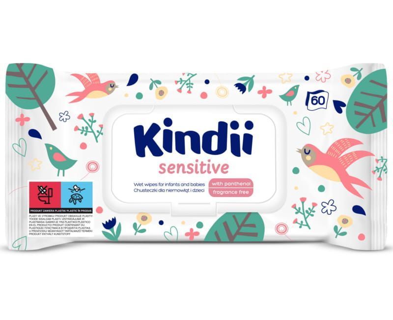 Apraksts Mitrās salvetes Kindii sensitive