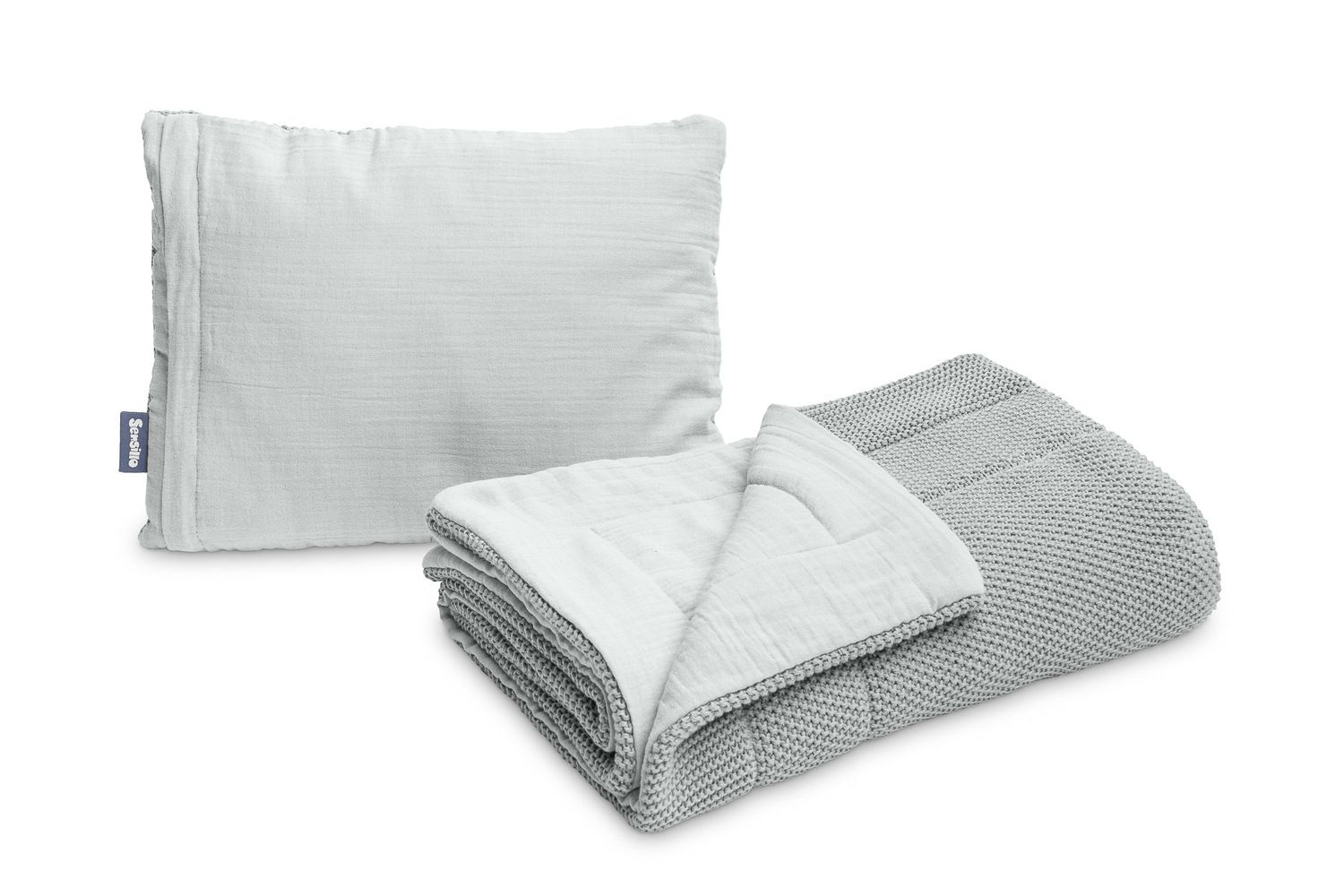 Muslīna un adīts kokvilnas pleds un spilvens zīdainim "Luxury" pelēks Nav pieejams