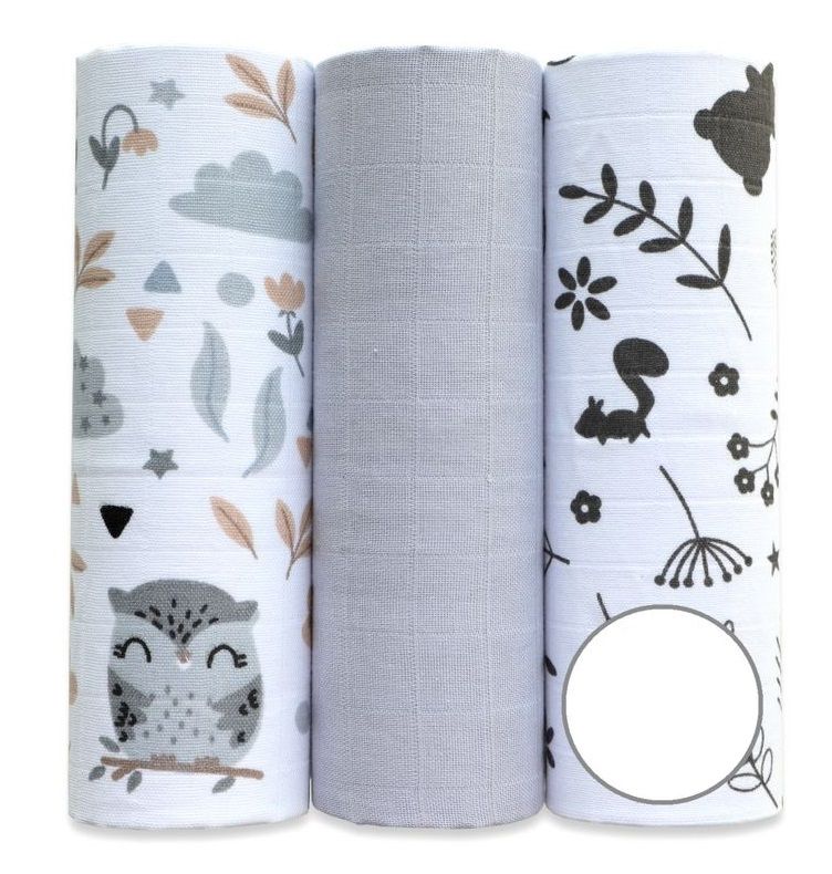Muslīna autiņi komplekts "Owls in Nature" 3 gab. Nav pieejams