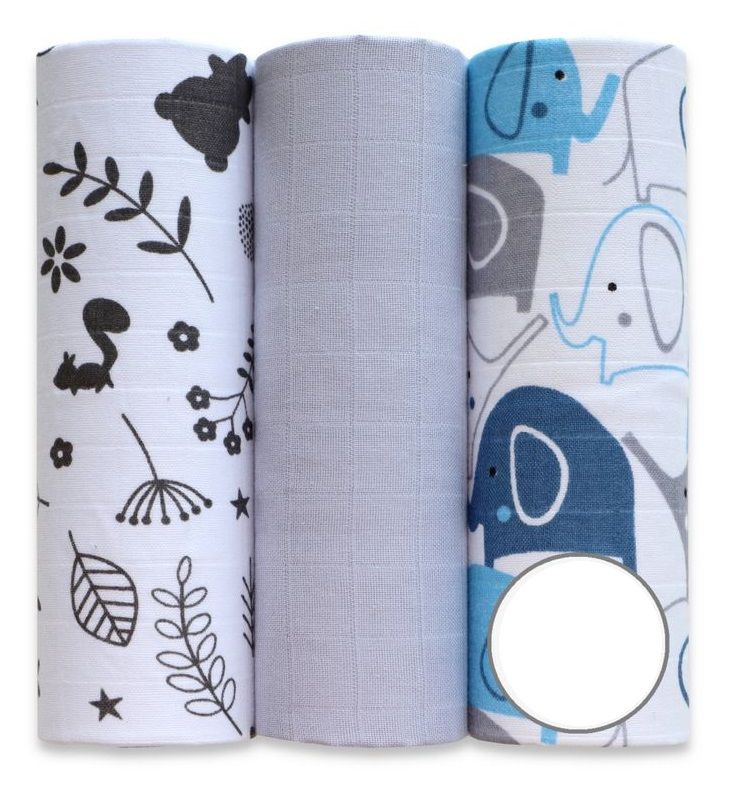 Muslīna autiņi komplekts "Elephants In blue" 3 gab.