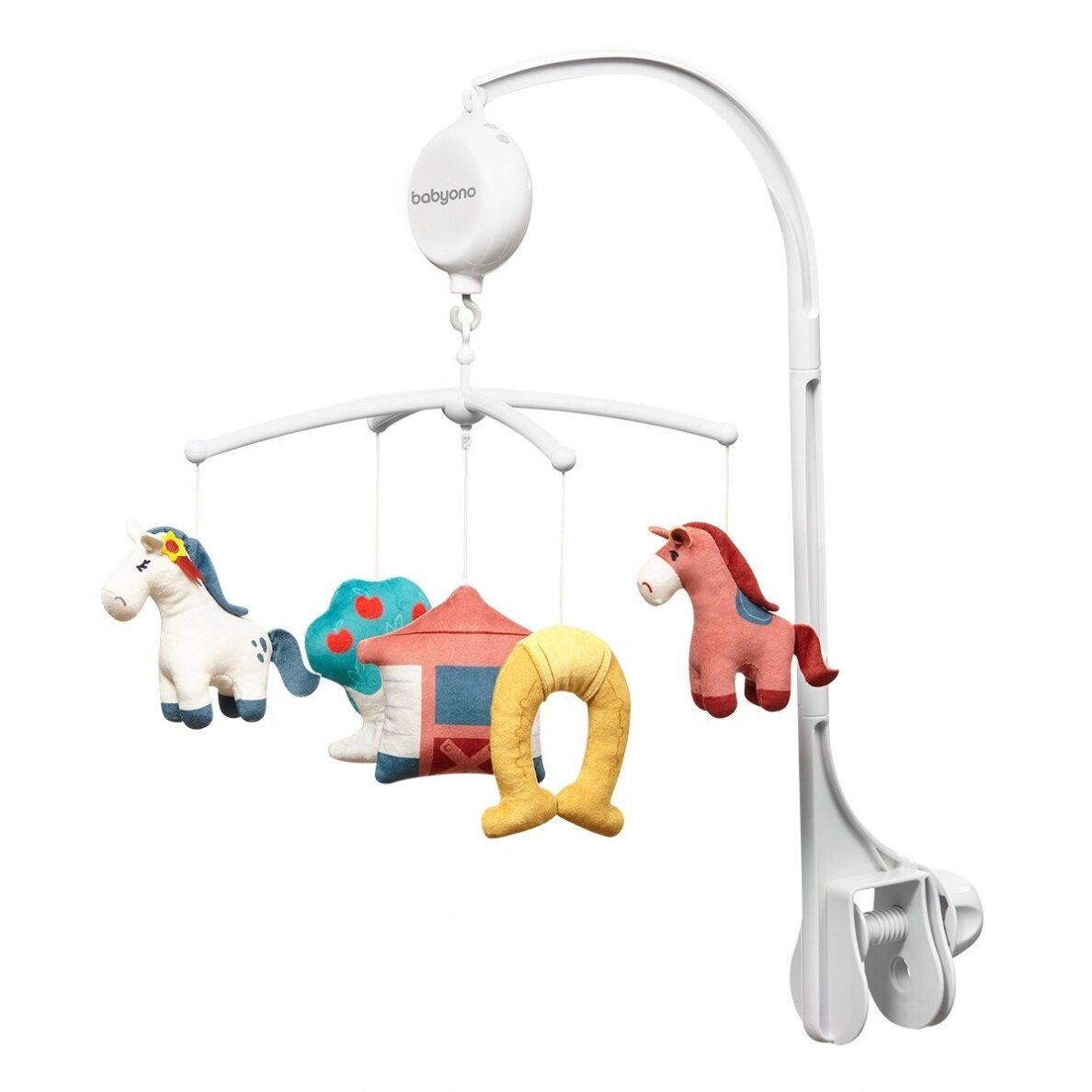 Viegli pievienojams pie bērna gultiņas restēm. Mantiņu augstumu var regulēt atbilstoši vajadzībām. Uzvelkot mehānismu, mantiņas griežas riņķī un skan mūzika.