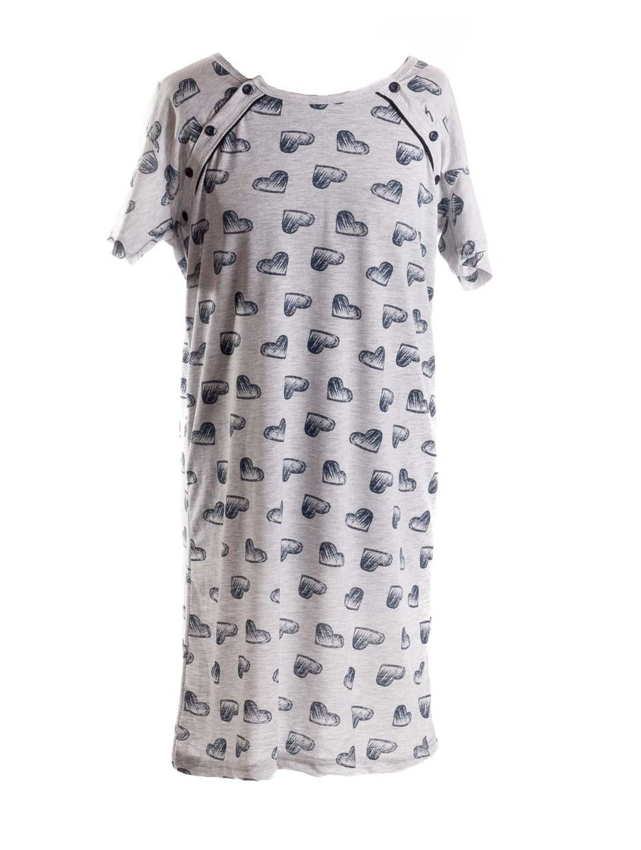 Apraksts Kokvilnas naktskrekls grūtniecēm un barojošām "Grey Hearts"