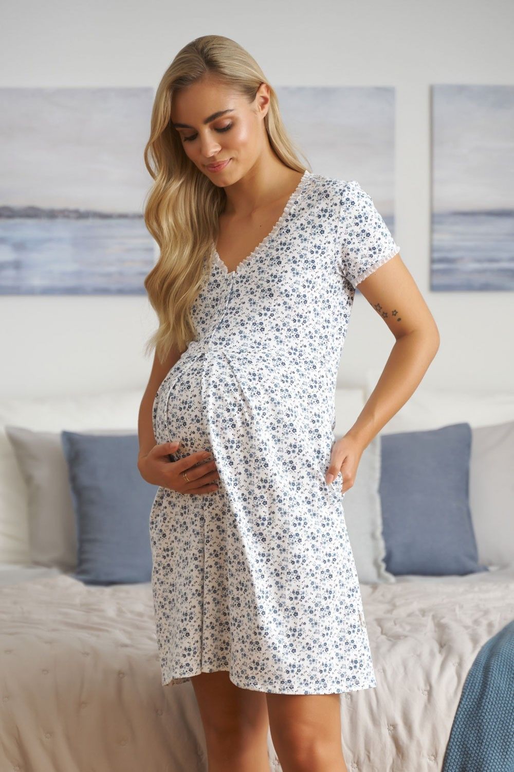 Apraksts Kokvilnas naktskrekls grūtniecēm un barojošām "In bloom"