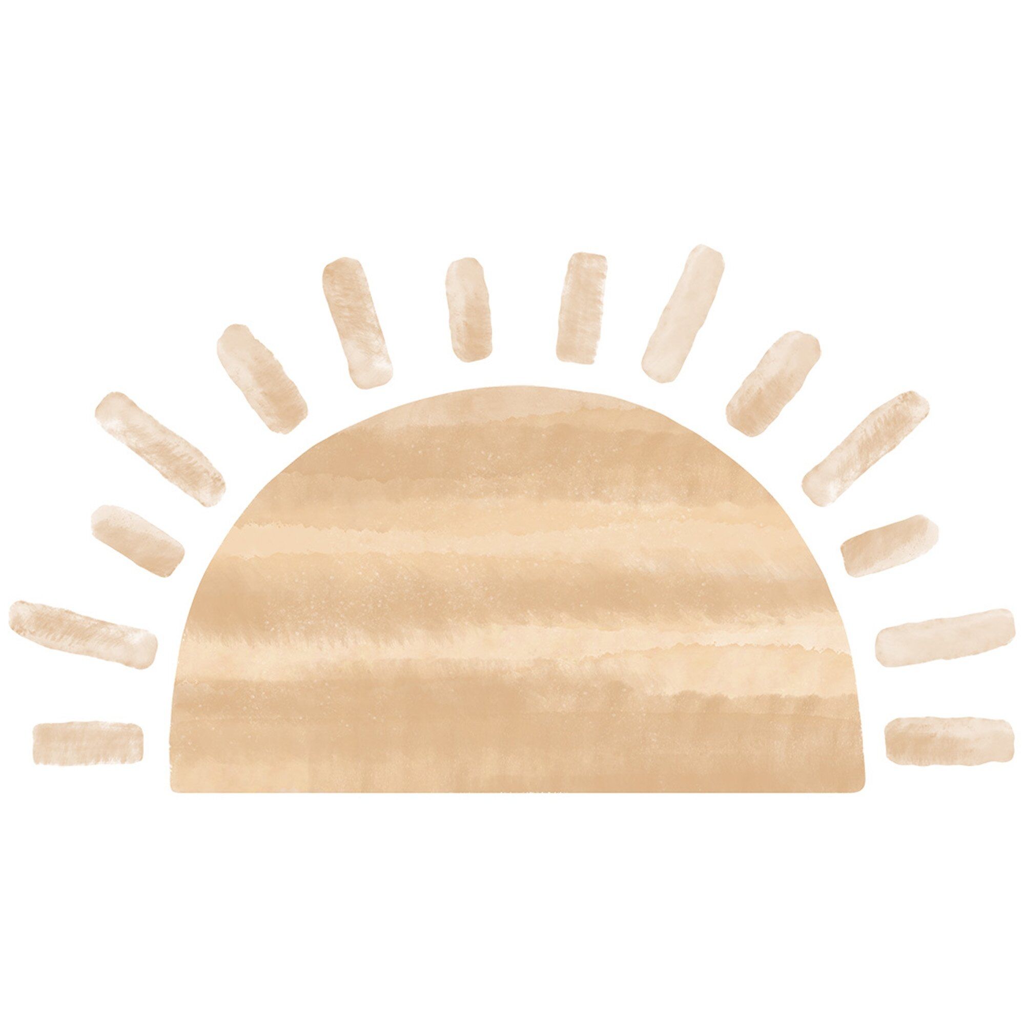 Graži pusės saulės formos sienų lipdukas jūsų vaiko kambariui. Ši akvarelinė saulės sienų dekoracija jūsų mažylio kambaryje sukurps nuostabią erdvę. Papuoštas specialia matine laminacija, apsaugančia nuo įbrėžimų kasdieniame naudojime. Dėl laminato jį daug lengviau klijuoti prie sienos.