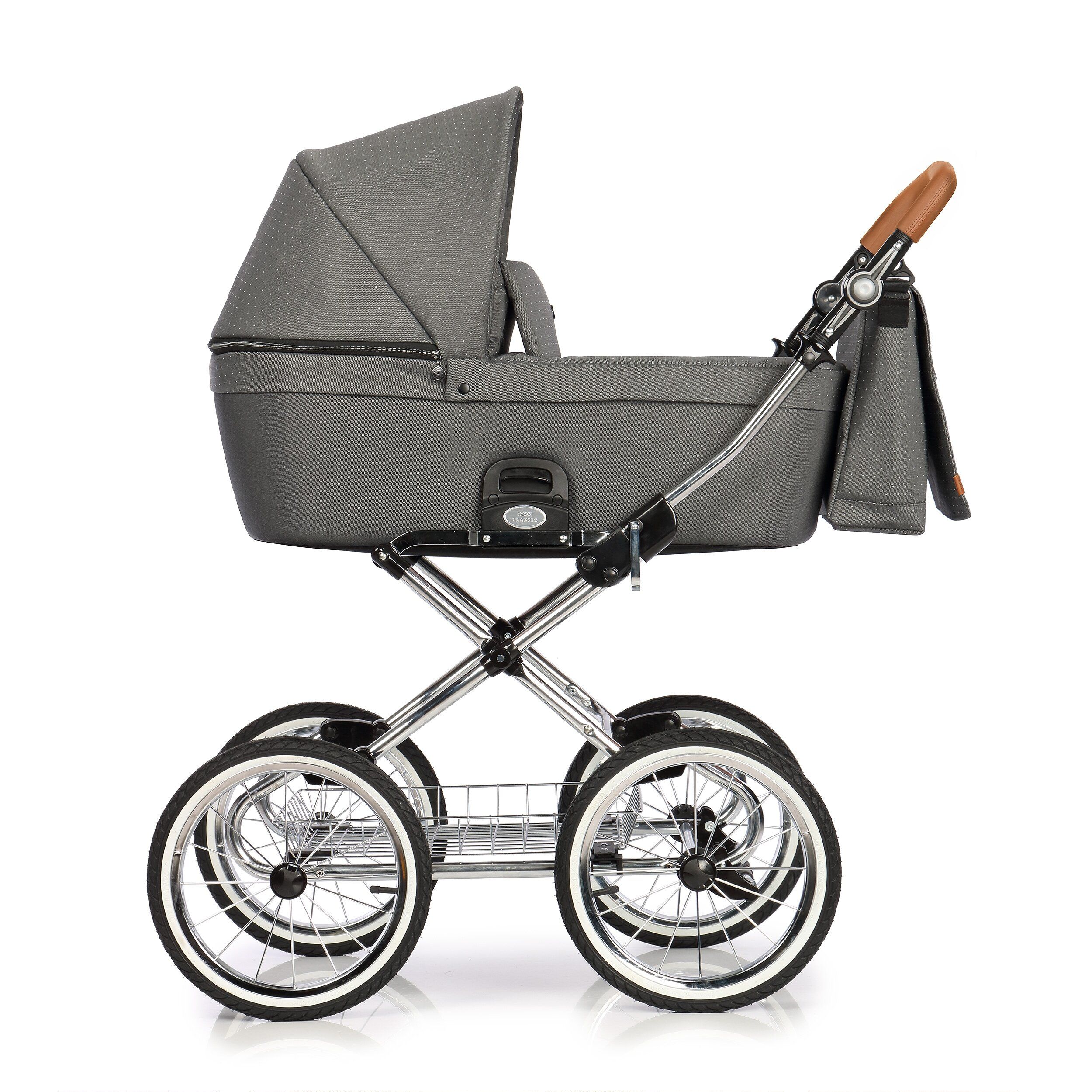 • Chromuotas rėmas, minkštas spyruoklinis amortizavimas, dideli ratai