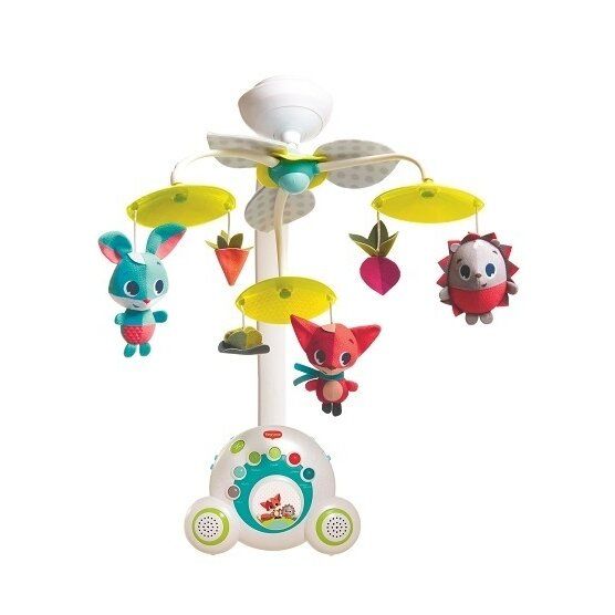 Kiekvienam vaikui reikia rutininės pereinamosios būsenos tarp žaidimo ir poilsio. Tiny Love karuselė, muzikos ir judesio derinių dėka, sužadins Jūsų žaidžiančio mažylio pojūčius, o taip pat leis jam pamažu pasiruošti miegui, kai jis yra mieguistas.