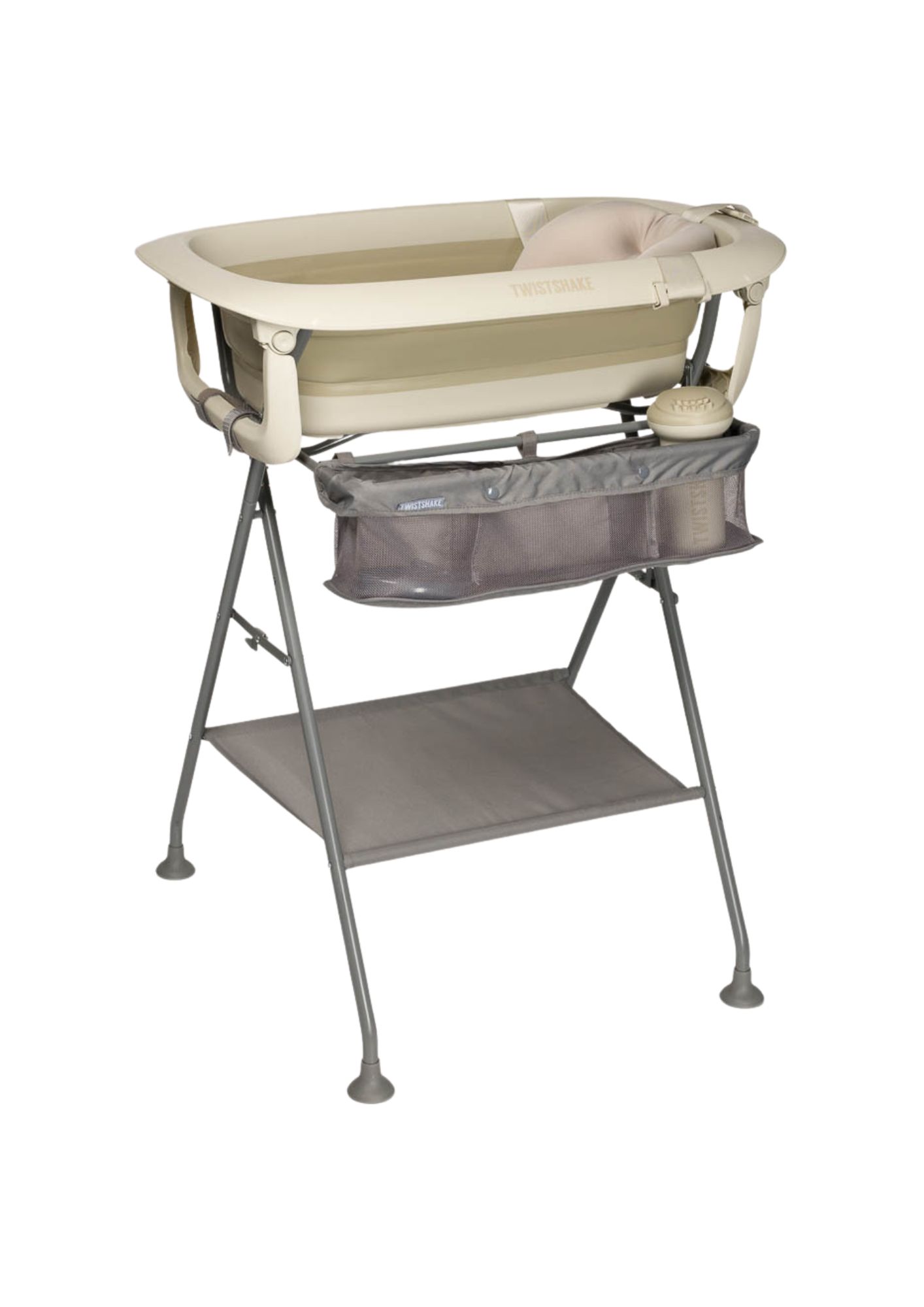 Īpašības Bez BPA – drošs un uzticams produkts jums un jūsu bērnam Materiāli: PP plastmasa un TPE gumija – augstas kvalitātes konstrukcija Ieteicamais vecums: no dzimšanas līdz 4 gadiem Vannas tilpums: 30 litri – plaša vannošanās pieredze Statīva izmēri (atvērtā veidā): garums 64,2 cm, platums 69,6 cm, augstums 95,5 cm Statīva izmēri (salocītā veidā): garums 64,2 cm, platums 15 cm, augstums 109,5 cm Statīva svars: 4,5 kg – izturīga un stabila konstrukcija Vietu taupošs dizains – saliekama vanna un statīvs ērtai uzglabāšanai Mīksts vannas spilvens – ātri žūstošs, mazgājams ar rokām, nodrošina komfortu un higiēnu Pilns vannošanās risinājums – vanna, spilvens, ūdens kausiņš un drenāžas šļūtene Drošības sertifikāti – bez BPA, PVC un ftalātiem Zviedru dizains – funkcionalitātei un drošībai radīts TWISTSHAKE Ergonomisks augstums – palīdz izvairīties no muguras sasprindzinājuma vannošanās laikā