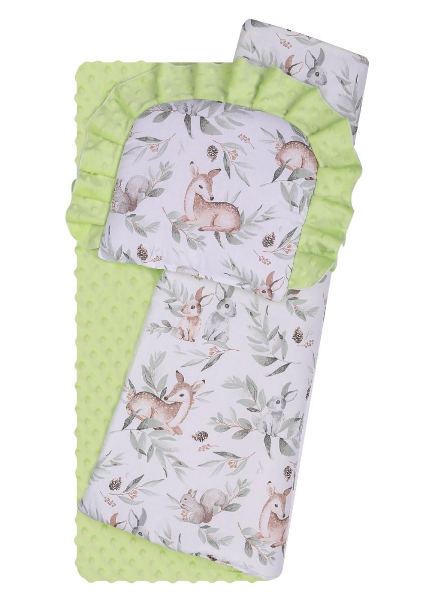 Apraksts Veļas komplekts ratiņiem "Deer" ar zaļu minku