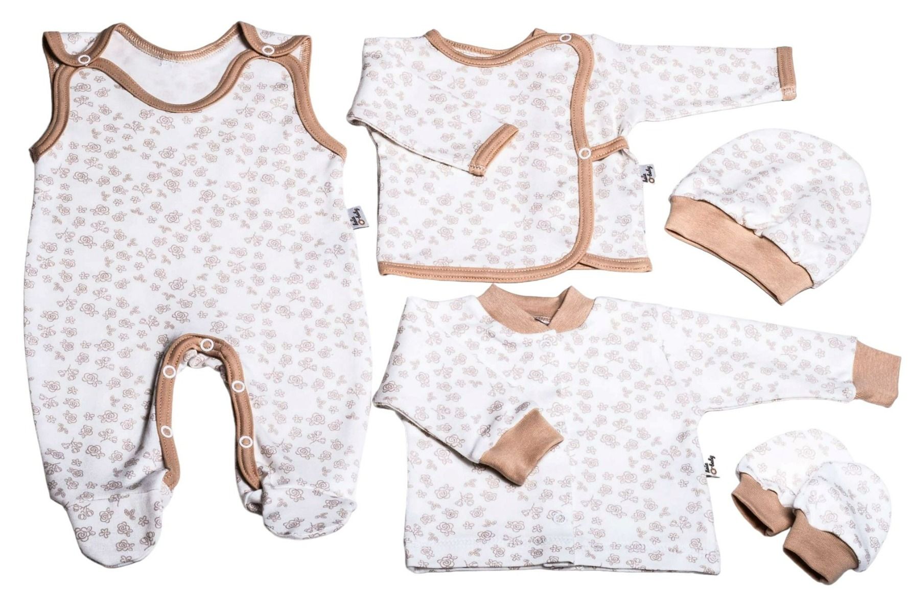 Atsevišķi var iegādāties cimdiņus, rombīšus vai gatavu 5-daļīgu zīdaiņu pārvadātāju, ko varēsiet ņemt līdzi gan uz slimnīcu kā pirmās drēbītes mazulim, gan visur citur, kur vēlaties, lai mazais izskatītos stilīgi un būtu ērti un ērti.