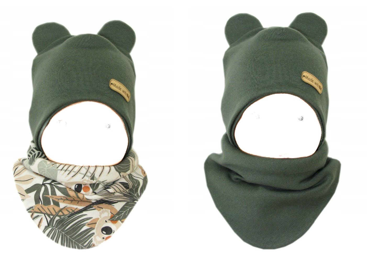 Zīdaiņu cepurīte ar šalli "Love" - KHAKI
