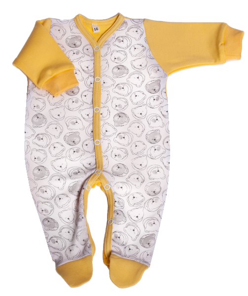 Apraksts Zīdaiņu kokvilnas rāpulītis ar piedurknēm "Baby bears" dzeltens