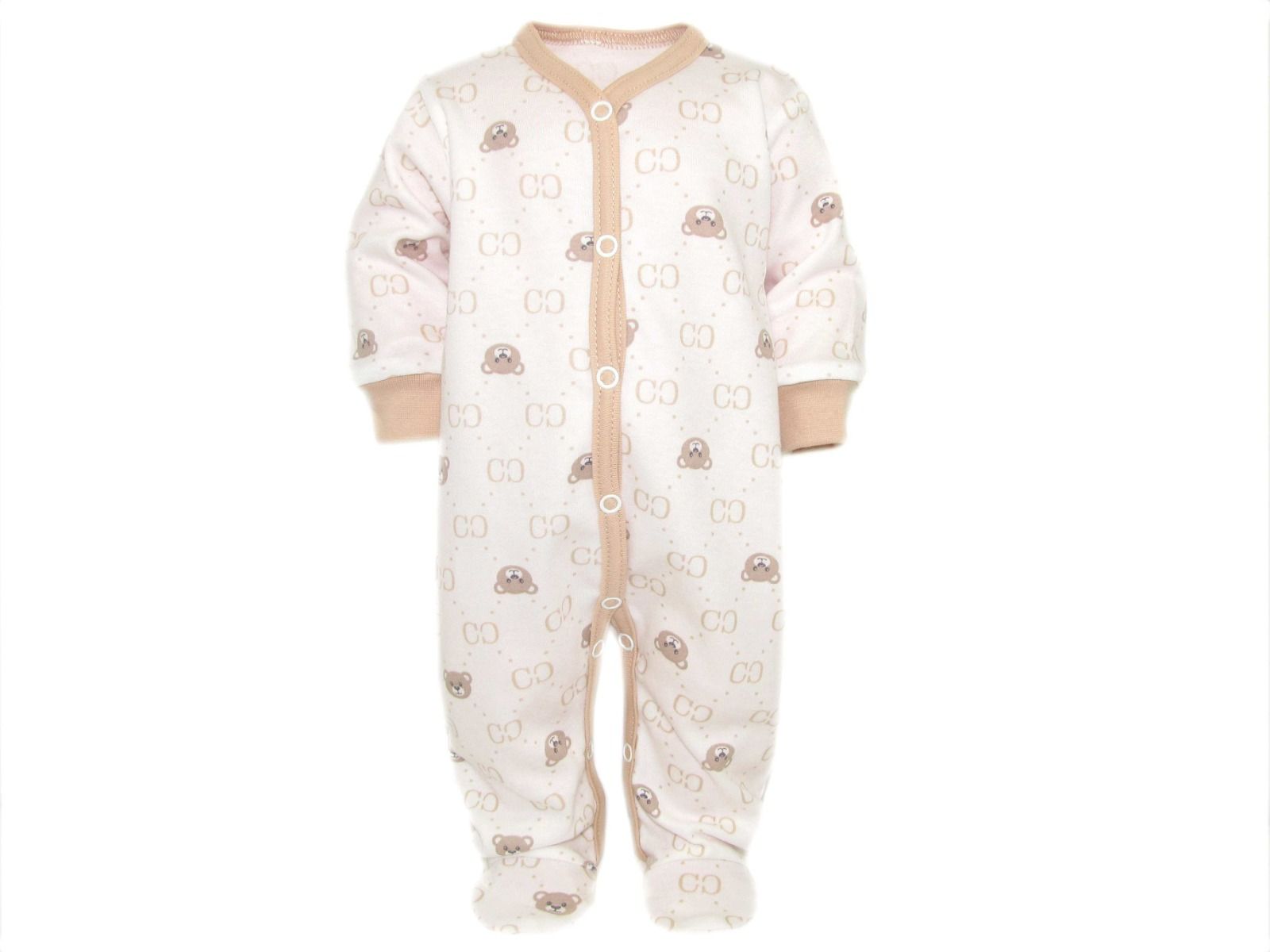 Apraksts Zīdaiņu kokvilnas rāpulītis ar piedurknēm "Bear glamour" beige