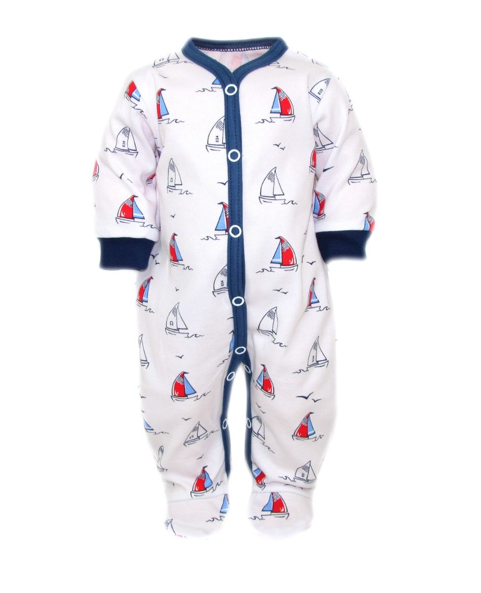 Apraksts Zīdaiņu kokvilnas rāpulītis ar piedurknēm "Boats" balts
