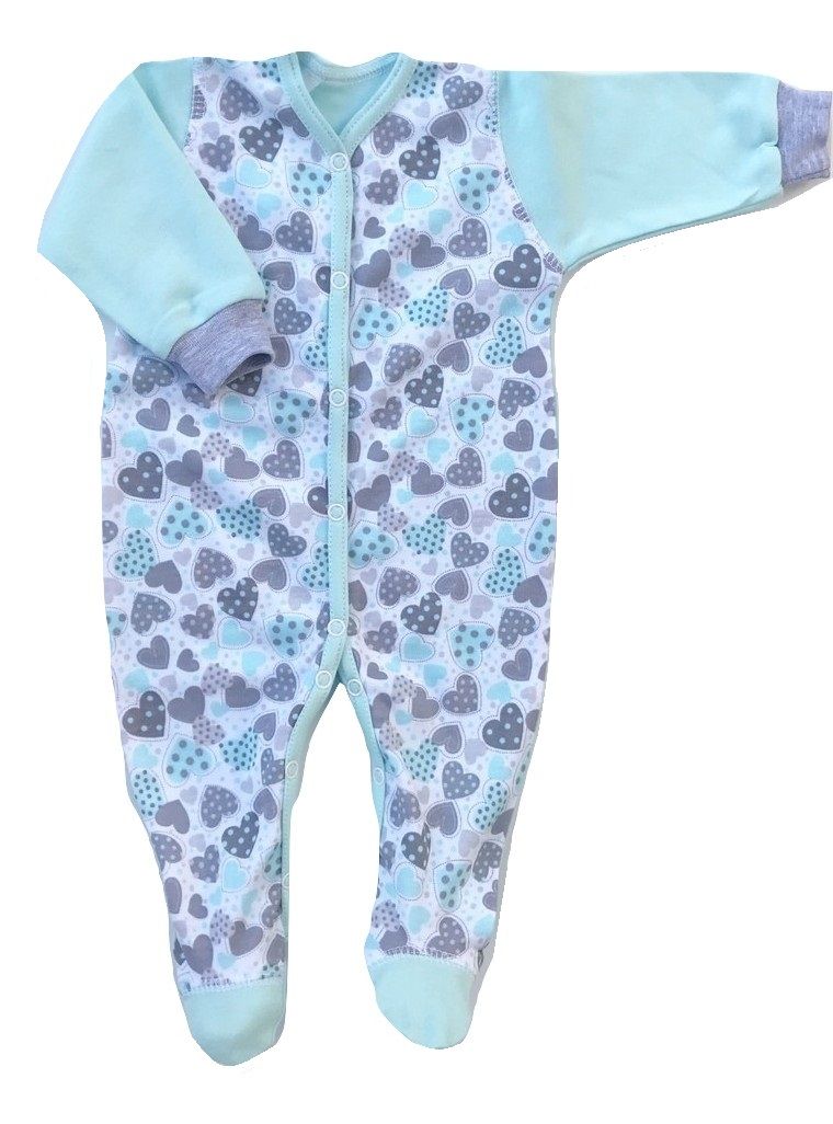 Apraksts Zīdaiņu kokvilnas rāpulītis ar piedurknēm "Hearts" tirkīza